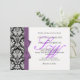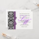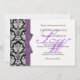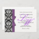 Damask Monogram Purple Bow Wedding Invitation