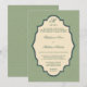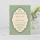 © Socialite Designs. Elegant damask invitation made to look vintage. Beautiful antique white and olive green colours. If you like this design but would like additional wedding products made, please do not hesitate to contact Socialite Designs.