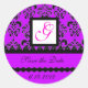 DAMASK MONOGRAM, violet fuchsia purple Classic Round Sticker