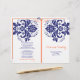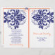 Elegant damask motif navy blue, coral orange folded wedding ceremony and party program. A modern yet classic wedding design with a retro flair. A delicate wedding design with a vintage feel to it, perfect for a contemporary or traditional spring or summer wedding. You will have to fold it in the centre. Choose only this type of paper-value as it folds well.