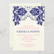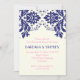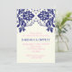 Damask navy blue, pink wedding rehearsal dinner invitation