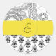 Damask Pattern, Black and White Damask, Monogram Classic Round Sticker