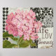 Beautiful! This pretty collage is made up of several black and white patterns, a large vintage flower, and the words Life Love Beauty. A gorgeous addition to a beautiful style.