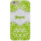Damask pattern lime green, white and grey frame with name cute girly iPhone 6 plus case. A completely customisable elegant design which is contemporary, modern and retro at the same time. You can personalise it and add your monogram, initials or other text. You can choose from over 200 background colours and change the green to colour of your liking. Cute and trendy design with a vintage flair.