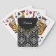 Pretty damask personalised playing cards with black and gold colour elegant damask pattern and monogram space to add your name or initials. Let's you play cards in style. Make your own deck of cards for your friends or family. Designed for women or girls who love fancy damasks.