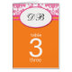 Pink and orange damask table number card. Matching invitation cards, rsvp cards and save the dates are available in this store.