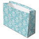 This large size gift bag is shown in a pretty aqua colour with a white damask print.