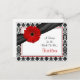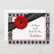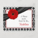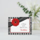 The text on this red gerbera daisy black and white damask recipe card for the bride to be is fully customisable. You can change it using the personalise option. For more extensive changes to the postcard, including changing the font, font colour, or font layout, choose the customise option. This red gerber daisy recipe card can be enclosed in the matching bridal shower invitation so that bridal shower guests can fill out the back with their favourite recipes and bring the card with them to the shower as a wedding keepsake for the bride to be. You could also use this in a birthday party invitation by changing the text on both the invitation and this card. The matching invitation is shown below.