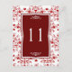 Damask red on white floral, hearts Table Number Postcard