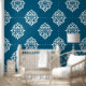Damask Regency Classic Crystal Teal Blue Wallpaper
