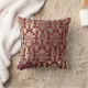 Damask Sepia Gold Metallic Burgundy Velvet Cushion