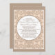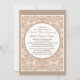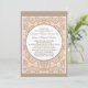 A formal damask wedding invitation in buff and white with a peach background and a circular window to hold your information.