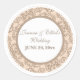 A formal, damask, round, sticker in buff and white with a peach background to compliment our Damask Style Invitation.