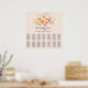 Elegant yet simple design featuring hand painted watercolor flowers and foliage in warm autumn pastel colors over a blush pink background with soft ivory damask swirls. Table seating chart that includes seating for up to 140 and 14 tables. You can delete a table or change the number of guests at your tables using the customize it feature. Design copyright, Audrey Jeanne Roberts.