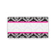 Damask Black White Hot Pink Wedding Invitation Mailing Address Labels.