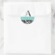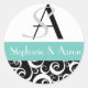 Damask Wedding Monogram in Black and Aqua Classic Round Sticker