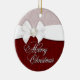 Damask White Satin Merry Christmas Ceramic Tree Decoration
