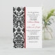 Elegant and inspiring, this classic wedding invitation is created in black and white damask with a red accent. This wedding invitation is perfect for a formal wedding. Matching save the date cards, response, reception, direction and thank you cards are also available.