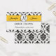 Wedding Reception Free Drink Voucher Card with black and white damask pattern printed with your monogram initial, the bride and groom names on a yellow line with 3D shadow effect. Printed with your names and monogram. Give your free drink tickets out at the reception or include them in your wedding invitation packet. Design by Elke Clarke© Graphics licensed.
