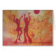 A sillouette of a couple, a man and a woman, dance, a disco ball hung from above, roses both pink and yellow in colour are in the background, with petals swirling around. This expressive and abstracted painting gives the feel of fun and celebration. Watercolor and guache. I did this as a promo for a friend's jazz music band.