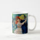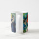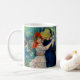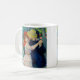 Coffee Mug featuring Pierre-Auguste Renoir’s oil painting Dance at Bougival (1883). A beautiful woman in a pink dress and red hat dances with a handsome man in a blue suit. A great gift for French art and Impressionism collectors.