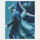 An expressive abstract composition capturing two figures suspended in motion, painted in layered shades of blue and teal. The contrast between stillness and movement evokes intimacy, distance, and the fleeting nature of connection, rendered through bold brushwork and fluid form.