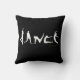The pillow has the word "Dance" spelled with dancing silhouettes of people in dance poses.