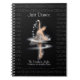 Capture the elegance of dance and the magic of the night sky with this customisable notebook. Featuring a digital airbrushed illustration of a graceful ballerina dancing among glowing stars, this notebook's black background includes a subtle, editable typography pattern of the word “Dance” (or your custom phrase) in a soft tint, creating an understated yet artistic effect. The cover is enhanced with an editable inspirational quote: "The darkest night produces the brightest stars."