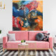 An original abstract painting bursting with vibrant colours and dynamic energy. Bold strokes of red, blue, orange, and black blend with layered textures and symbolic forms, inviting the viewer into a world of motion and mystery. Perfect for modern interiors or collectors of expressive, one-of-a-kind art.
