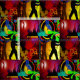 Dance party club scene with dancer silhouettes and the word party scattered around the picture printed on fabric.