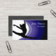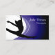 A silhouette of a lady dancer doing a jump is the main image on the left of this design, while a violet gradient blends across from the far right to the middle of the card, ending in a semi-sphere. This design is especially suitable for dancers or businesses related to dance of the entertainment industry.