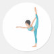 Before dancing you want to stretch and warmup. This design is a girl stretching. She has pulled one left up high behind her. This dancer stretching design looks great on these stickers. Perfect for yourself or as a gift