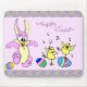 Dancing bunny and chicks with eggs wishing "Happy Easter". Lovely and funny gift for your kids