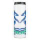 Waltz your way into hydration. Dance couple in blues and greens adorn the travel mug.