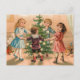 Lovely vintage image showing four children dancing around a Christmas tree.