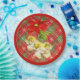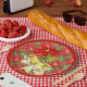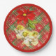 Christmas Party paper plates with adorable little Christmas angels dancing from a Poinsettia flower and a Christmas plaid background.
