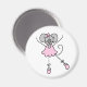 A stick figure mouse ballerina in a pink dress on a customisable magnet.