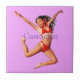 Black-haired red bikini-wearing girl leaps high dancing to customise, personalise by changing to your name