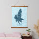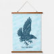 A simple, blue silhouette-like image of a lively raven (Corvus corax) done in Norse-Celtic style, superimposed on a snowy background image. Customise by adding your own text.