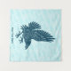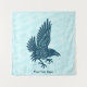 A simple, blue silhouette-like image of a lively raven (Corvus corax) done in Norse-Celtic style, superimposed on a snowy background image. Customise by adding your own text.