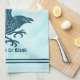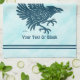 A simple, blue silhouette-like image of a lively raven (Corvus corax) done in Norse-Celtic style, superimposed on a snowy background image. Customise by adding your own text.