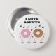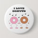 A chocolate doughnut and a strawberry doughnut are having a delightful time dancing. We should all dance more. You can alter the background colour and make various alterations to the letters to this fun button. Customisable. Original work; © Sharon Lee Hudson. All rights reserved.