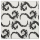 This elegant yet playful animal fabric design features an Asian motif abstract pattern of joyful dancing dragons in a simple colour scheme of black and white.