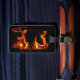 Easily customise the text on the back of this luggage tag. It depicts the energy of fire in a wood burning stove. The orange, gold and yellow flames appear as joyful dancing characters. They are set off by a black background. Make your suitcases stand out on an airport carousel with unique tag designs!