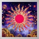 “Dancing Fire of the Cosmos” The Sun. The sun’s hypnotic swirls and golden flares give the illusion of movement, as if the solar flames are alive. An intricate masterpiece celebrating energy, warmth, and celestial balance with colours of red, orange, yellow and blue.