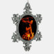 This pewter snowflake ornament depicts the energy of fire in a wood burning stove. The orange, gold and yellow flames appear as joyful dancing characters set off by a black background. Great for the Halloween or Christmas holidays or just any time of year.