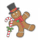 An illustration of a happy dancing gingerbread man with a top hat and a candy cane. During Christmas celebrations, gingerbread and candy cane are always present. Baking a gingerbread is a way for bonding with the family and making children happy.