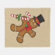 An illustration of a happy dancing gingerbread man with a top hat and a candy cane. During Christmas celebrations, gingerbread and candy cane are always present. Baking a gingerbread is a way for bonding with the family and making children happy.