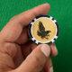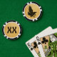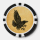 A simple silhouette-like image of a lively raven (Corvus corax, done in Norse/Celtic style, in a circle, superimposed on an old paper background image, giving it a mediaeval feel. Customise by adding th, e chip value, or other text, on the reverse side.
