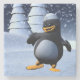 3D digital render of a cute dancing penguin wearing a sailor hat on a winter landscape background